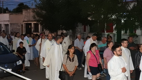 Cientos de personas participaron de la celebración, que comenzó con una procesión por las calles del barrio del ahora Santuario Nuestra Señora de Lourdes.